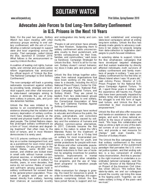 >Solitary Watch Print Edition: Summer/Fall 2013